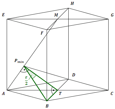 ist genau dann minimal, wenn senkrecht auf steht. Für diesen Fall betrachtet man das rechtwinklige Dreieck .