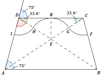 Bestimmen Sie rechnerisch den Umfang der Figur, die durch die Strecken , und sowie die Kreisbögen , und begrenzt wird.