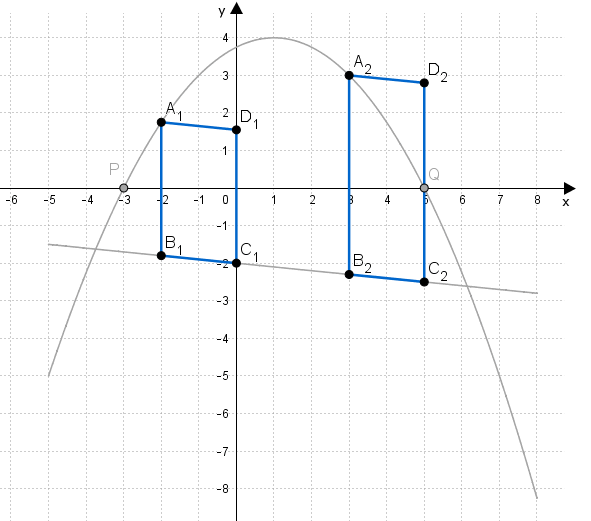 Punkte auf der Parabel und Punkte auf der Geraden haben dieselbe Abszisse .